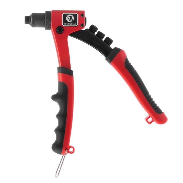 Ручний клепальний інструмент Intertool — заклепник, призначений для скріплення будь-яких матеріалів з допомогою витяжних алюмінієвих заклепок різних діаметрів 2.4, 3.2, 4.0, 4.8 мм.