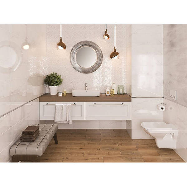 Плитка для стіни CERSANIT MARIEL WHITE GLOSSY 20x60 (9шт/1,08м²) — елегантна глянцева настінна плитка білого кольору, яка чудово підходить для ванної кімнати, кухні або інших приміщень. Має сучасний формат 20x60 см, легко поєднується з декорами та іншими кольорами. Глянцева поверхня візуально збільшує простір і додає світла.
