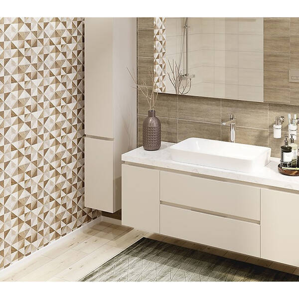Настінна плитка з сучасним дизайном у світлих відтінках надає інтер’єру чистоти та елегантності. Прості, але стильні лінії створюють відчуття простору та гармонії, ідеально підходячи для ванних кімнат, кухонь та інших житлових приміщень. Плитка легко комбінується з різними оздоблювальними матеріалами, додаючи сучасний акцент в будь-який інтер’єр.