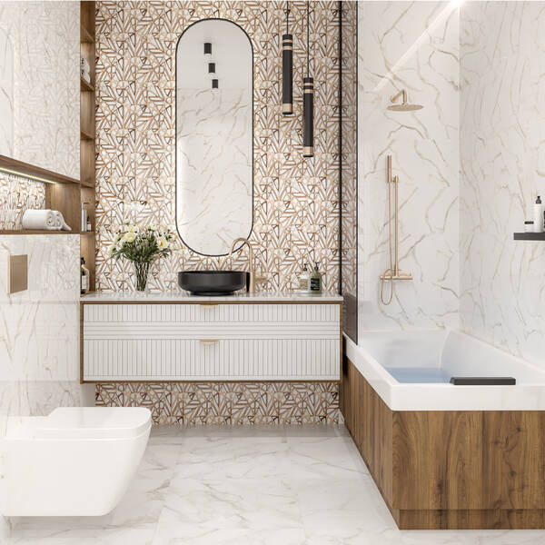 Ця плитка чудово підходить для ванної кімнати, кухні чи інших житлових приміщень. Гладка поверхня полегшує догляд, а міцність матеріалу забезпечує довгий термін служби.