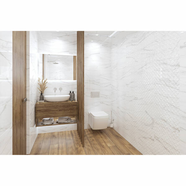 Рельєфна плитка сірого кольору з текстурою надає стінам особливу глибину та стиль. Ця плитка ідеально підходить для створення сучасного та витонченого інтер’єру у ванній кімнаті, кухні чи коридорі. Простий, але виразний дизайн легко комбінується з іншими матеріалами та акцентами, підкреслюючи елегантність та стриманість простору.