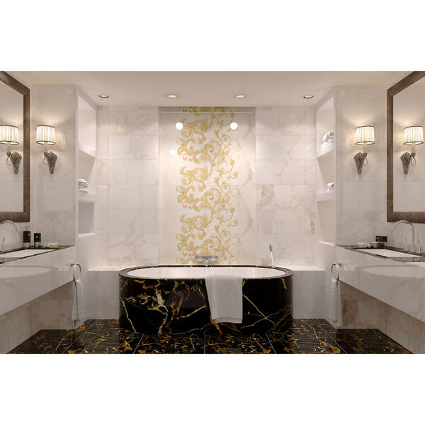 Стіна плитка GOLDEN TILE Saint Laurent у білому кольорі — вишукане рішення для стильного та світлого інтер'єру. Формат 300x600 мм зручний в укладанні, а гладка глянцева поверхня з легким мармуровим візерунком надає простору чистоти та елегантності. Ідеально підходить для ванної кімнати, кухні або інших житлових приміщень.