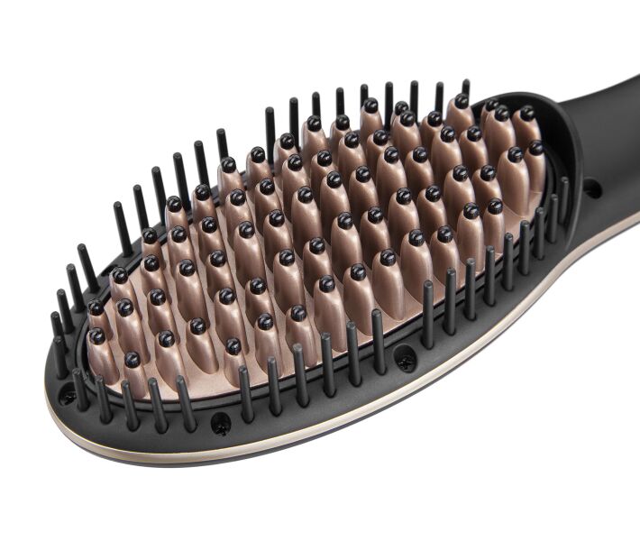 Якісне опрацювання кожного пасма гарантоване завдяки особливій конструкції нагрівального елементу. Керамічне покриття щетини дозволяє приладу швидко розігріватися і утримувати рівномірну температуру на всій поверхні. Близьке розташування щетинок різноманітної форми орієнтоване на всебічний вплив на кожен волосок. У підсумку, розчісуючи волосся, ви відразу робите його ідеально гладким. Кераміка дозволяє локонам добре ковзати по поверхні і не пересушує їх.