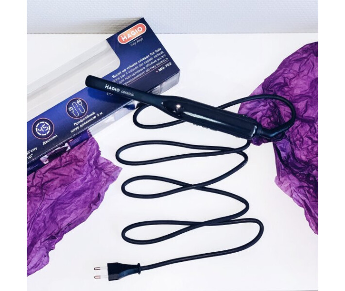 Гофре для прикореневого об'єму волосся MG-702 має гарний зовнішній вигляд з Soft touch покриттям, а також невеликі розміри, завдяки чому його не тільки зручно зберігати, а й легко використовувати для тонкої роботи з волоссям. Робочі полотна мають плавальні пластини, керамічне покриття й рівномірно розподіляють тепло, завдяки чому волосини не перегріваються, не електризуються й сильно не травмуються під час процедури. У моделі MG-702 є можливість регулювати температуру від 140 до 200 градусів, що є великою перевагою у використанні. Швидке нагрівання (3 хвилини) і довгий обертальний шнур (2 метри) з петлею для підвішування, неабияк спрощують роботу зі щипцями, даючи змогу використовувати їх як для дому, так і з професійною метою.