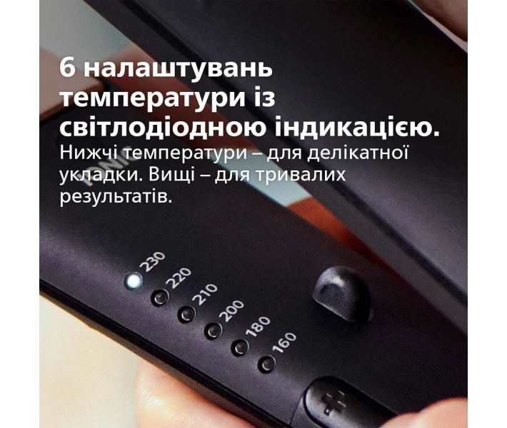 Технологія ThermoProtect рівномірно розподіляє тепло, запобігаючи пошкодженню волосся. Завдяки температурним режимам від 160°C до 230°C, плойка підходить для всіх типів волосся. Зручний дисплей дозволяє вибрати оптимальну температуру для вашого типу волосся.