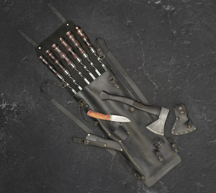 Інформація Подарунковий набір шампурів для BBQ VIKING CREATE в шкірі "Вожак чорний"