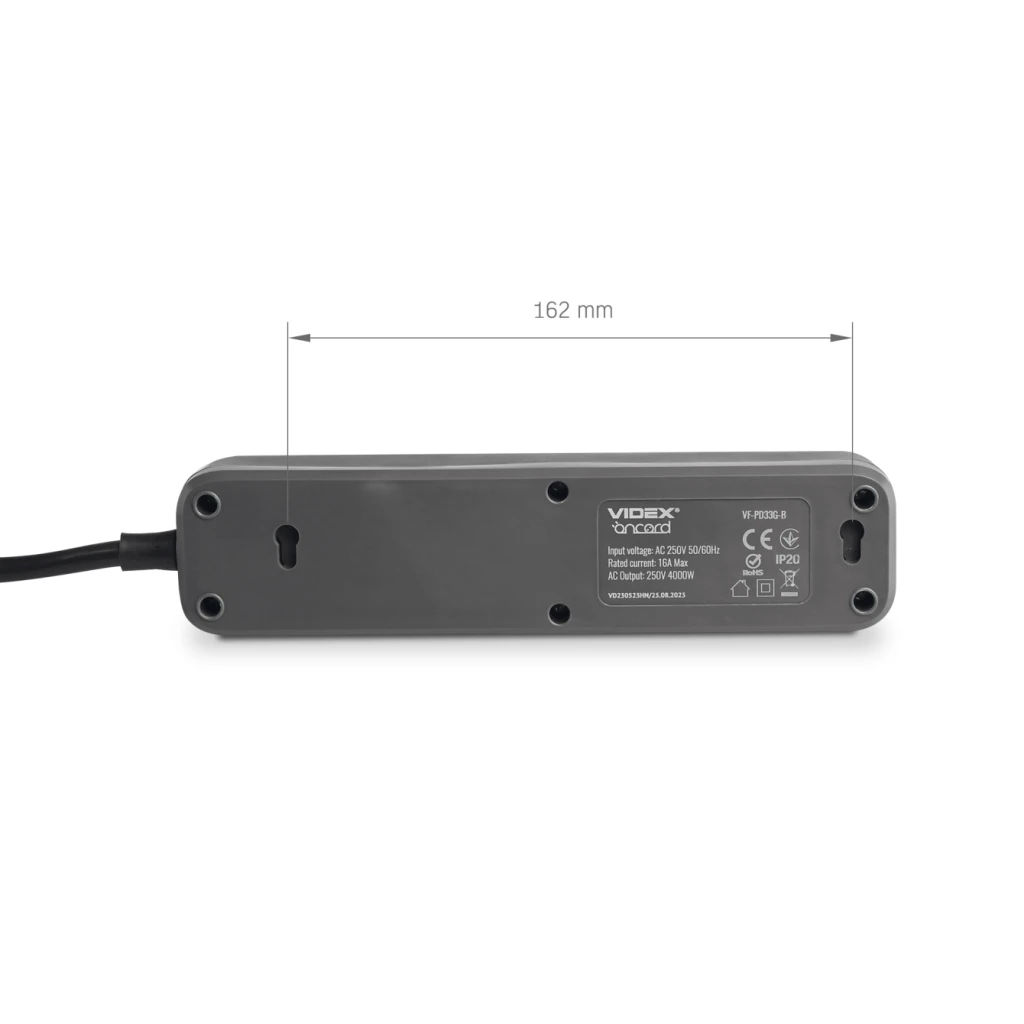 МЕРЕЖЕВИЙ ПОДОВЖУВАЧ VIDEX ONCORD - сучасний пристрій для дому та офісу призначений для повсякденного використання. Являє собою подовжувач з 3-ма розетками змінного струму із заземленням (тип EU). Виглядає стильно та сучасно в будь якому інтер'єрі, а головне надійний та безпечний. Корпус виготовлений з вогнестійкого (750°C) пластику - поліпропілену (PP), а контакти зроблені з міді та латуні з нікелевим покриттям. Трижильний кабель виготовлений з високоякісної міді і покритий товстим шаром PVC для захисту від пошкодження, довжина складає 3м. Подовжувач також має захист від дітей, який передбачає додаткові захисні шторки в гнізді розеток змінного струму. Гарантія становить - 2 роки. - Номінальна напруга - 250В, 50/60 Гц;- Максимальний струм навантаження - 16А;- Максимальне навантаження - 4000 Вт (4 кВт) Призначення і застосування виробуВиріб призначений для підключення декількох електроприладів до однієї розетки. Функціональні характеристикиВиріб можна використовувати тільки в закритих приміщеннях. Захист від води та пилу не передбачено. Увага!- Виріб можна використовувати лише в мережі, яка відповідає енергетичним вимогам і стандартам якості, встановленим законодавством.- Не з'єднуйте два або більше блоків послідовно.- Не розбирайте розетку, шнур і вилку.- Не використовуйте виріб з пошкодженими розетками або шнуром. Існує ризик ураження електричним струмом.- Не накривайте виріб під час роботи.- Не перевищуйте максимальне навантаження.- Використовуйте виріб лише в сухому, електробезпечному середовищі.- При відключенні від мережі тягніть не за шнур, а за вилку.