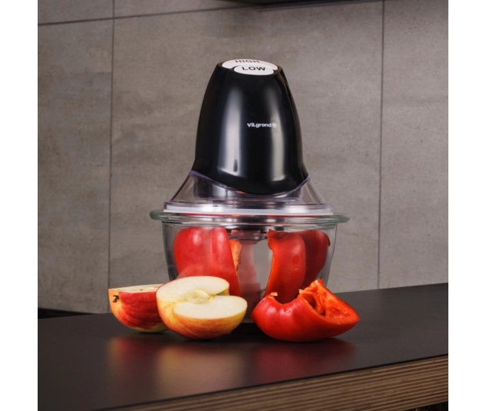 Подрібнювач Vilgrand VC4101G - це стильний кухонний прилад, здатний швидко подрібнити овочі, фрукти і навіть перемолоти горіхи. Ніж для подрібнення з нержавіючої сталі прослужать довгі роки, значно спрощуючи вам життя. Чоппер Vilgrand, потужністю 450 Вт, має захист двигуна від перевантажень, два режими швидкості для регулювання ступеня подрібнення продуктів (від шматочків до подрібнення). Ножі приладу виготовлені з нержавіючої сталі, чаша виконана зі скла. Усі комплектуючі легко знімаються та миються. Компактний та легкий чоппер стане щоденним помічником та значно скоротить Ваш час та сили на кухні.