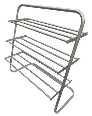 Зручна та міцна полиця для взуття з оригінальним дизайном у вигляді трьох S-подібних рівнів. Виготовлена з металу з надійним порошковим покриттям чорного кольору. Конструкція забезпечує хорошу вентиляцію взуття та економить простір у передпокої. Завдяки універсальним розмірам (75×40×82 см), підходить для розміщення до 12 пар взуття. Чудовий вибір для дому, офісу або дачі.