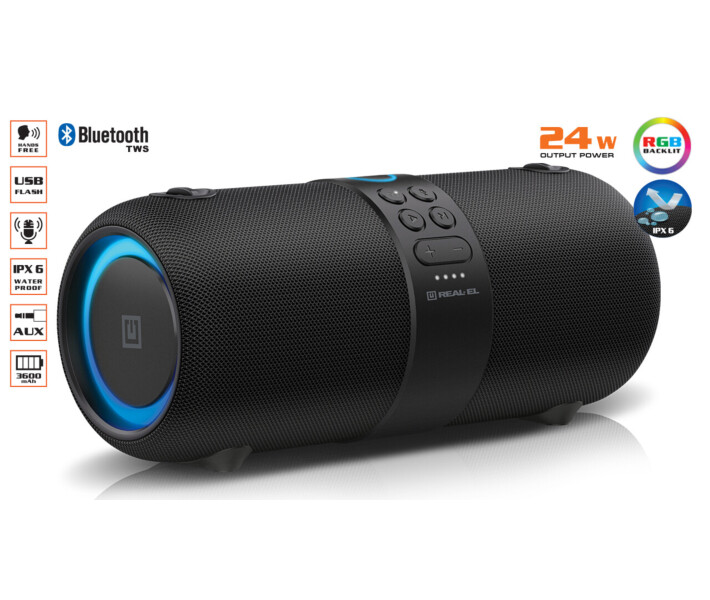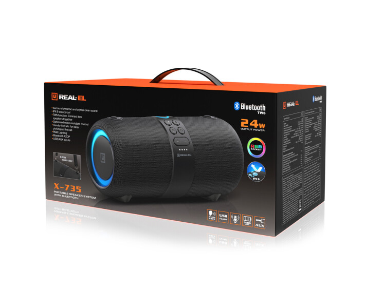 Портативна акустика RealEl X735 це надійний супутник для вашої музики в будьякому місці. Стильний і компактний дизайн приємно доповнить ваш інтерєр. Завдяки високій якості звучання, кожна мелодія пролунає яскраво і чітко. Цей акустичний гаджет забезпечить вас енергійним звуком на протязі тривалого часу без збоїв. RealEl X735 легко береться з собою куди завгодно на пікнік, пляж або просто на прогулянку. Насолоджуйтесь музикою в повній мірі без обмежень завдяки портативній акустичній системі RealEl X735.