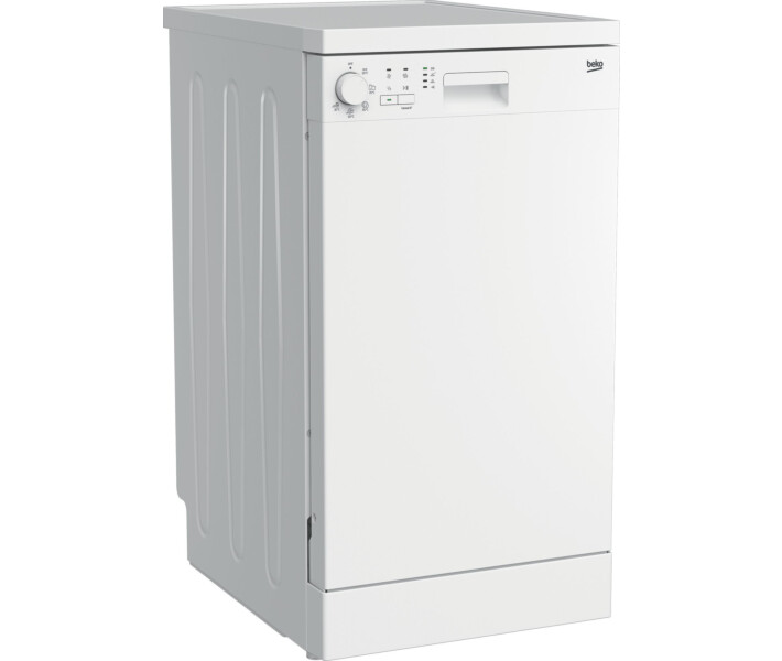 Лаконічний білий корпус посудомийної машини Beko DFS05020W ідеально впишеться в інтер'єр будь-якої кухні. Мінімум зайвих елементів роблять дизайн більш витонченим. Акуратна і зрозуміла панель управління з поворотним регулятором доповнена кнопками вибору додаткових опцій роботи. Модель розрахована на 10 комплектів посуду, але при цьому має ширину всього 45 сантиметрів. Тому їй знайдеться місце навіть в маленькій кухні.
