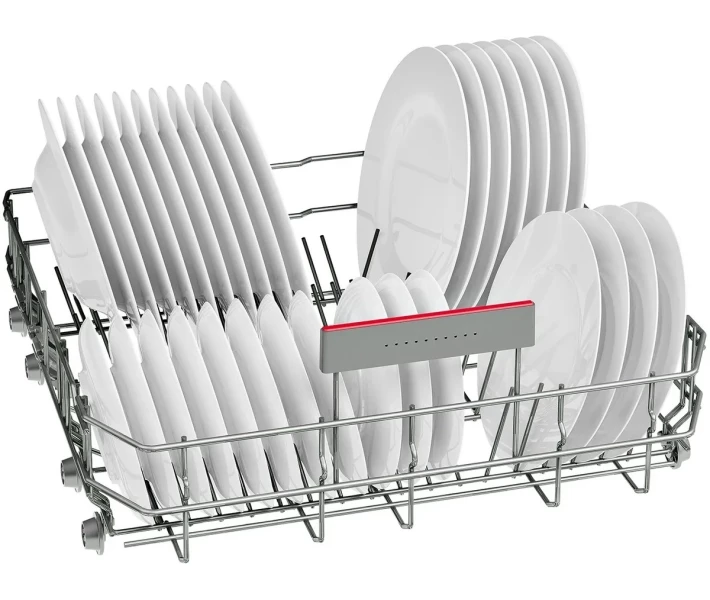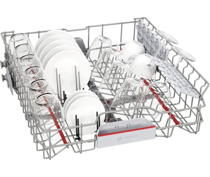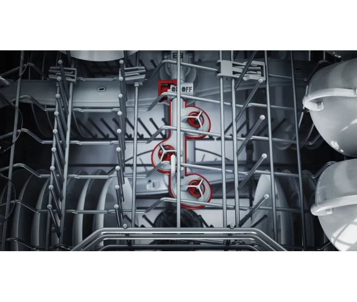 Місткий верхній короб можна регулювати за висотою в цілому на 5 см між трьома положеннями простим рухом руки – завдяки системі RackMatic. Тарілки для піци чи фужери на високій ніжці — ця система дозволяє дуже гнучко створити додаткове місце для високих предметів посуду у верхньому або нижньому коробі.