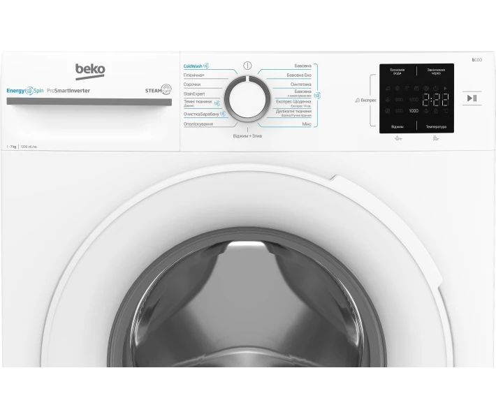 Пральна машина Beko BM1WFSU37233WW з об'ємом прання 7 кг оснащена інноваційними технологіями для ефективного догляду за білизною. Технологія EnergySpin оптимізує енергоспоживання під час прання, а ProSmart Inverter забезпечує тиху та довговічну роботу. Завдяки функції AddXtra ви можете додавати речі під час циклу прання, а система SteamCure використовує пару для зменшення складок і кращого видалення плям. ColdWash дає змогу прати за низьких температур без втрати якості, а WaterMode адаптує споживання води. Барабан AquaWave забезпечує дбайливе прання для найделікатніших тканин.