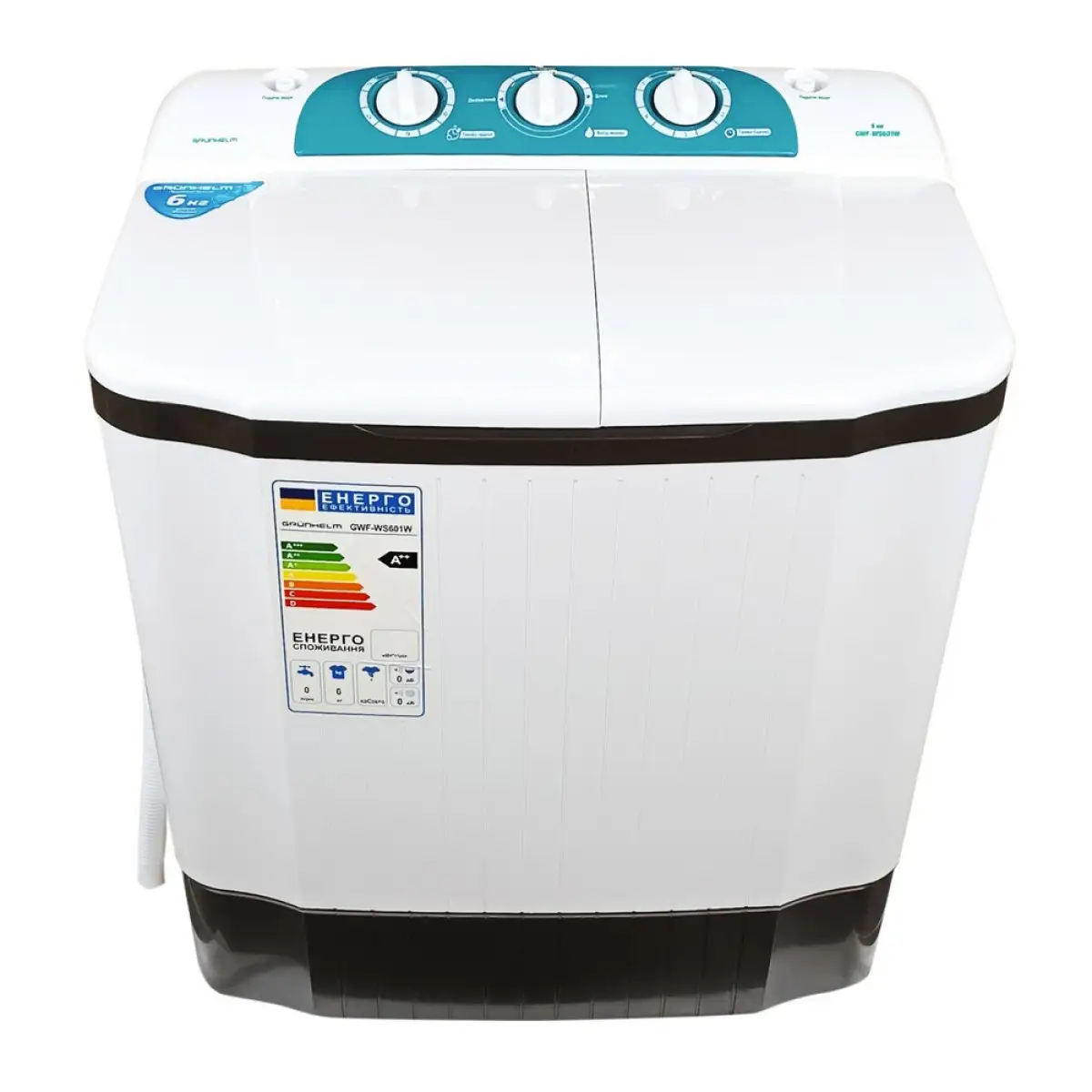 Пральна машина GWF-WS601W Grunhelm - якісна напівавтоматична модель з верхнім завантаженням білизни. Вона стане Вашим незамінним помічником й істотно заощадить кількість води і електроенергії під час прання. Машинку можна використовувати без центрального водопостачання. Максимальна завантажувальна ємність - 6 кг білизни. Машинка виконана з якісного ABS-пластика.