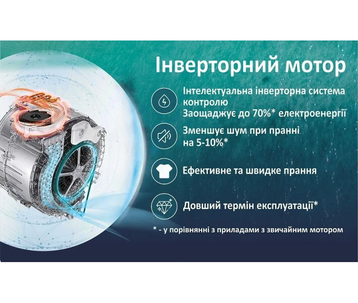 Один з головних плюсів прямого приводу полягає у відсутності великої кількості дрібних деталей, що швидко виходять з ладу. Тому даний мотор служить довше і не потребує додаткового спеціального обслуговування довший час. Прилад з прямим приводом краще збалансований і завдяки цьому працює тихіше, практично не створюючи ефект стрибків при віджиманні. Енергозбереження приладу збільшується до 70% за рахунок системи управління, яка визначає вагу білизни, контролює швидкість обертів барабану, кількість води, що надходить, нагрівальний елемент для отримання гарячої води і термодатчик, для регулювання потрібної температури води. Завдяки надійно закріпленому барабану, він стає більш маневреним - швидше запускається і зупиняється, легше реверсує і може розвивати вищі оберти за менший час, що покращує якість прання, тому речі у пральних машинах з прямим приводом не так пошкоджуються.