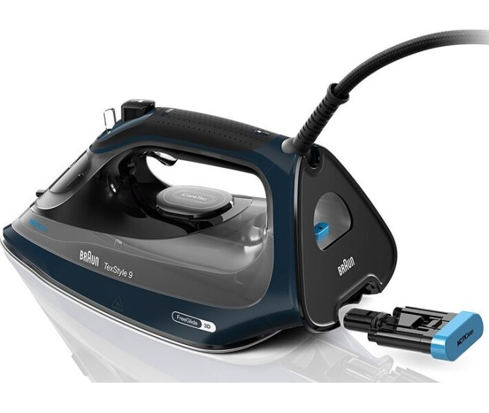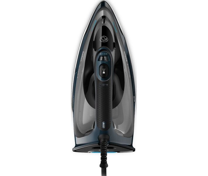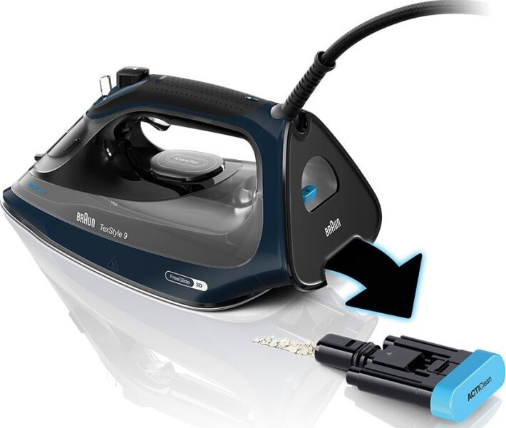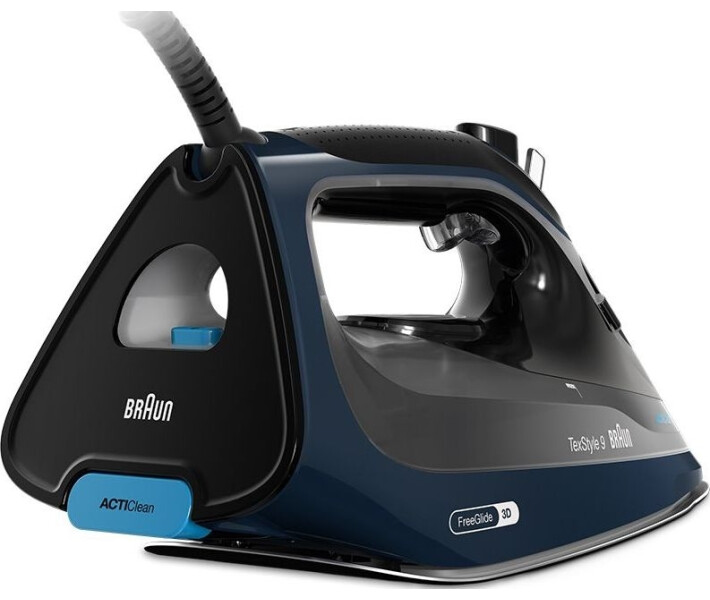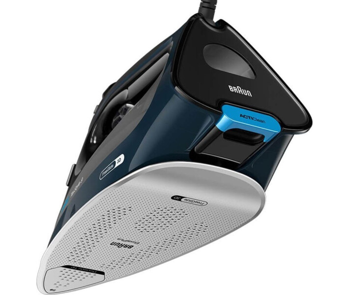 Праска Braun SI 9682 DB серії TexStyle 9. Потужність: 3200 Вт. Інноваційна, закруглена із заднього боку, підошва Eloxal Plus 3D FreeGlide забезпечує плавне ковзання на 360 градусів, без зачіпання ґудзиків, кишень і блискавок. Унікальна технологія iCare (дає змогу прасувати як делікатні тканини, так і грубі матерії без додаткових налаштувань). ActiCleane System (унікальна модифікація значно спрощує видалення накипу). Паровий удар: 260 г/хв. Регульована подача пари: 0-60 г/хв. Об'єм резервуара для води: 330 мл. Вертикальне відпарювання. Система антинакип і антикрапля. Функція автоматичного вимкнення. Паровий носик. Колір: темно синій.