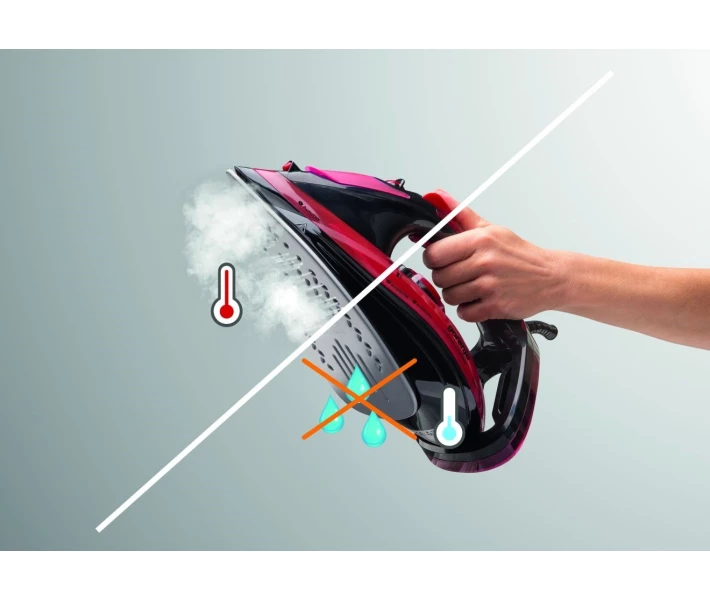 Прасуйте, не хвилюючись, що залишаться плями від крапель води. Завдяки системі, яка запобігає капанню води з підошви, ви можете прасувати делікатні тканини при низьких температурах і ні про що не хвилюватися. Жодних плям і кращі результати.