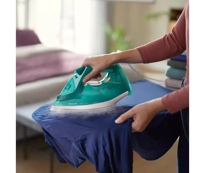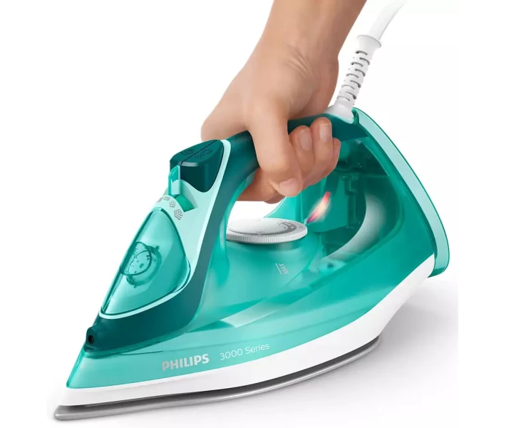 Парова праска серії 3000 спрощує прасування завдяки потужному струменю пари, що розгладжує жорсткі складки. Керамічна підошва забезпечує плавне ковзання, а резервуар для води на 300 мл досить великий, щоб виконувати невеликі навантаження по прасуванню без повторного наповнення.