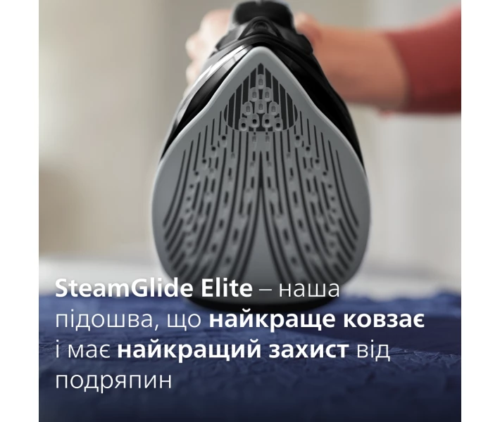 Підошва SteamGlide Plus зі спеціальним покриттям легко ковзає по будь-якій тканині, не залишаючи білястих слідів і складок. Підошва відрізняється високою стійкістю до утворення подряпин і потертостей. Носик підошви має загострену форму, це допомагає при пропрасовуванні кишень, рюшів, виточок, місць навколо гудзиків. Підошва впорається з будь-яким завданням на «відмінно».