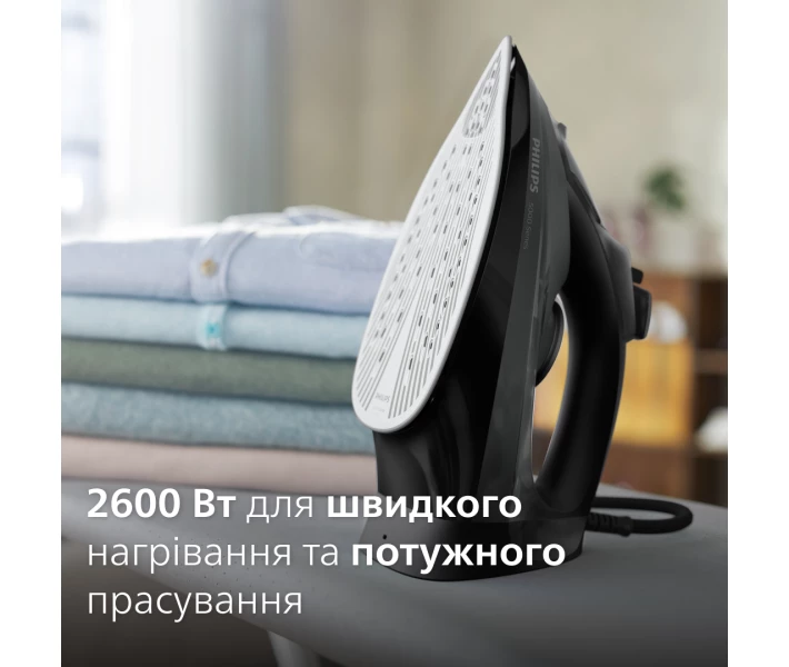 Потужність 2600 Вт забезпечує швидкий нагрів підошви, вже через кілька секунд після включення в мережу праска готова до роботи.