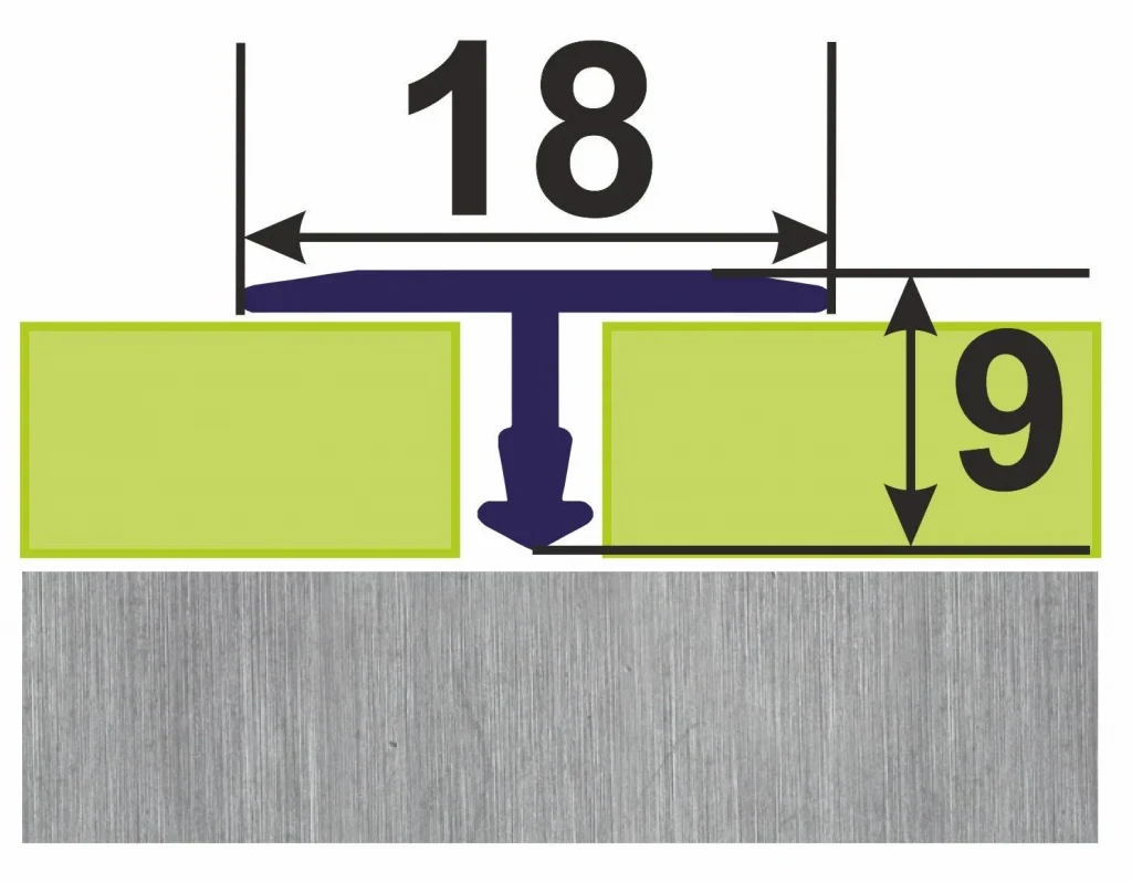 Тавровий поріг АТ 18 застосовується для з'єднання підлогових покриттів, таких як плитка-ламінат, паркет-плитка і т.д. Алюмінієвий Т-профіль допоможе приховати і задекорувати стик (шириною до 13мм) між однорівневими покриттями. Цей алюмінієвий профіль для плитки використовують не тільки для керамічної плитки, але і як декоративний дизайнерський елемент для оздоблення стін, стель, меблів і т.д.