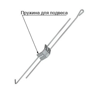 Пружинний підвіс призначений для закріплення гіпсокартонних плит. Він використовується при монтуванні металевого каркаса дворівневого стелі як з'єднує елемента - скріплює несучі та напрямні профілі між собою з метою вирівнювання каркаса по площині. Пружинний підвіс фіксується до вихідної поверхні за допомогою спиці-петлі і дюбелів. Відгуки на пружинний підвіс свідчать, що це дуже корисна деталь в гіпсопрофільной конструкції: спільно з підвісом-спицею пружинний підвіс дозволяє регулювати рівень висоти монтируемого підвісної стелі.
