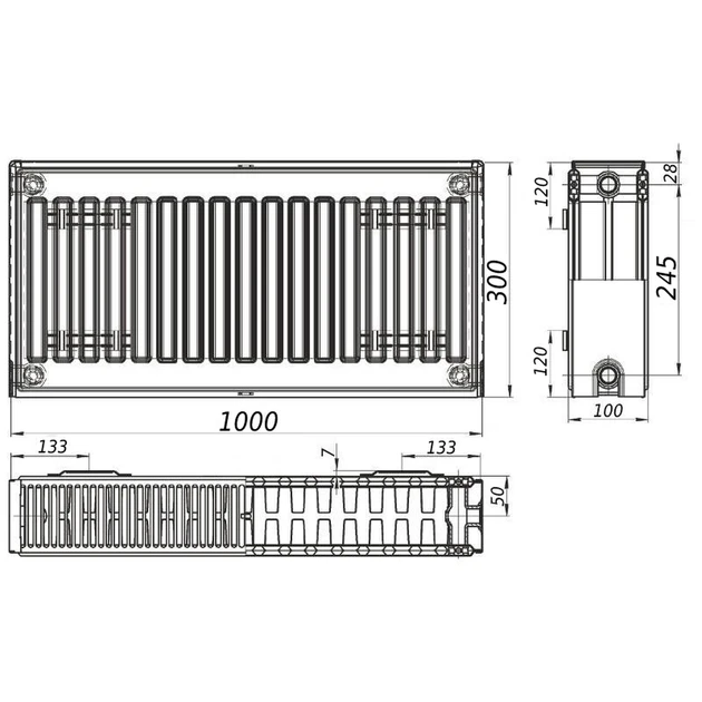 - Радіатор сталевий панельний 22 тип бок. 300х1000 KALITE