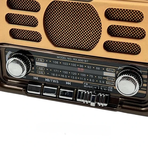 Радіоприймач GOLON RXBT6061 це ідеальне рішення для поціновувачів якісного звуку і різноманіття музичних потоків. Стильний дизайн, зручне управління й простота використання роблять його незамінним елементом вашого домашнього аудіосетапу. Завдяки вбудованому Bluetooth модулю ви зможете насолоджуватися улюбленою музикою зі смартфона або планшета, не витрачаючи час на провідне підключення. Якісний прийом радіостанцій, відмінний звук та стабільна робота ось головні переваги цього радіоприймача. Незалежно від вашого музичного уподобання, GOLON RXBT6061 забезпечить вам задоволення й комфортне відтворення звуку.