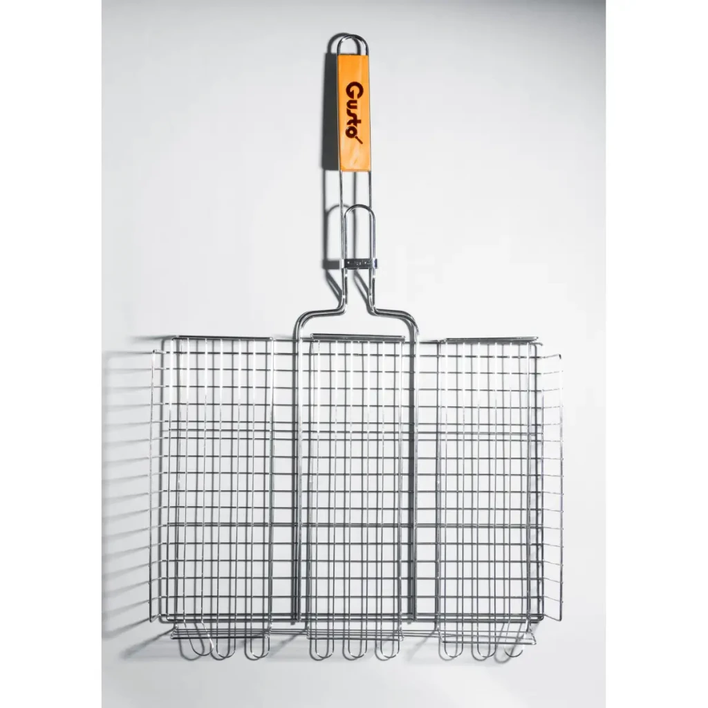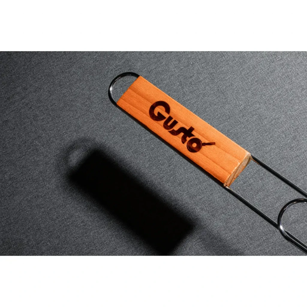 Решітка-гриль Time2Grill з бортом GUSTO - має міцну та довговічну металеву раму з нержавіючої сталі, яка витримує високі температури. Допомагає прожарити продукти набагато рівномірніше з обох боків, не дозволивши окремим шматочкам пересушитися. Борт решітки запобігає випаданню продуктів та полегшує їх перевертання. Ручка решітки виготовлена з дерева, що забезпечує комфортне та безпечне використання. Вам не потрібно турбуватися, що кришка відкриється, тому що на ручці розташоване надійне кільце-фіксатор. Стане незамінним інструментом для приготування смачної та здорової їжі.