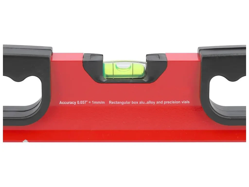Рівень алюмінієвий з ручками 150 см YАТО YT-3026 має стійкий до ударів і пошкоджень лакований корпус, що виготовлений з алюмінієвого профілю, товщиною 1.5 мм. Точне, довговічне позиціонування рівня і жорсткість корпусу гарантують високу точність і повторюваність показань рівня, а зручні ручки в корпусі полегшують утримання. Запобіжні наконечники, що захищають рівні від пошкоджень, виготовлені з ударостійкого еластичного матеріалу.