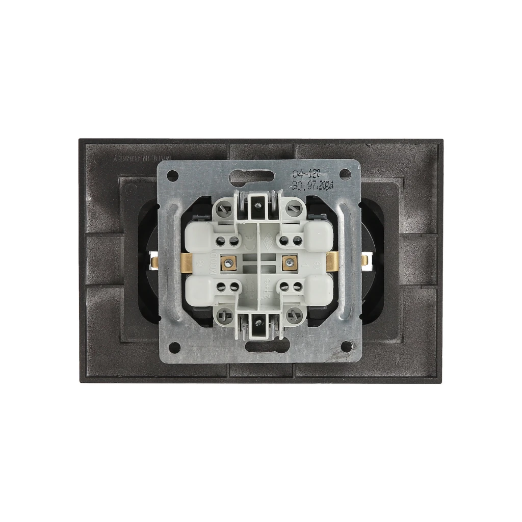Подвійна розетка з заземленням Mono Electric DESPINA (графіт) — настінна електророзетка з двома гніздами та заземлюючим контактом. Колір «графіт» надає елегантного, стриманого вигляду, підходить до сучасних інтер’єрів.