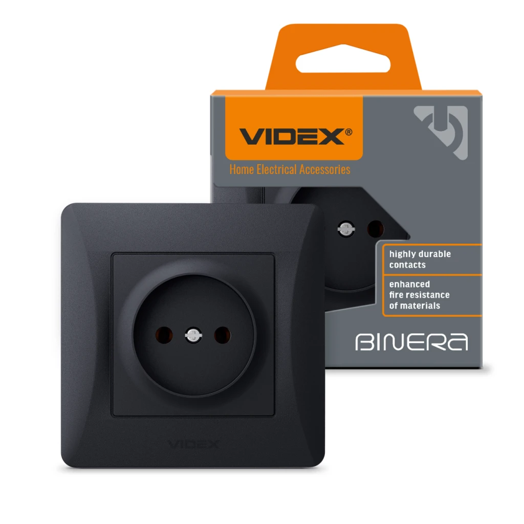 Характеристики Розетка VIDEX BINERA одинарна чорний графіт