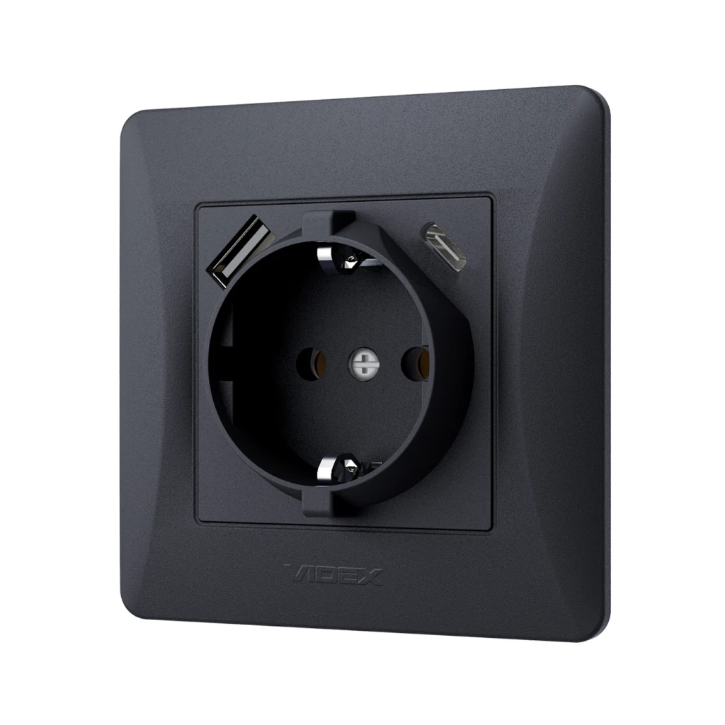 Інформація Розетка VIDEX BINERA одинарна із заземленням з USB+USB-C чорний графіт