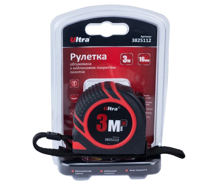- Рулетка обгумована ULTRA з нейлоновим покриттям полотна 3мх16мм