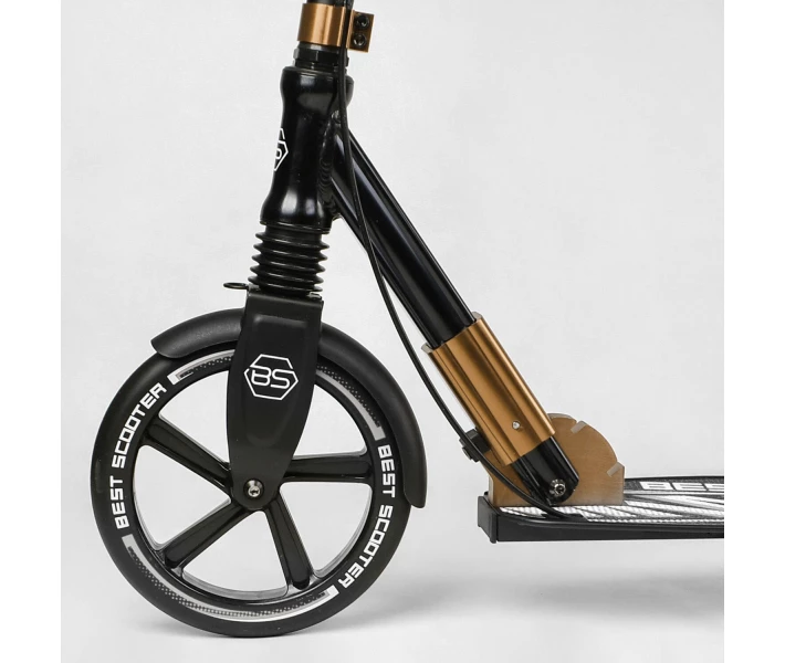 Дитячий двоколісний самокат Best Scooter зі складною конструкцією, переднім амортизатором і фарою.