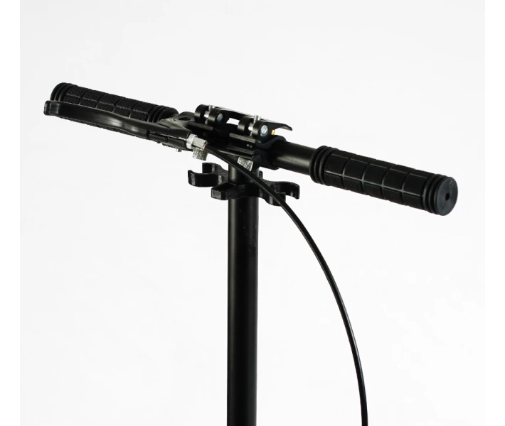 Висоту керма можна відрегулювати відповідно до зростання користувача. Поліуретанові колеса оснащені високоякісними стійкими до зносу підшипниками. Для уповільнення ходу або екстреної зупинки передбачено ножне гальмо, розташоване над заднім колесом, а також ручне дискове гальмо заднього колеса. Механізм складання дозволяє надати самокату компактного вигляду, що значно спрощує його транспортування.