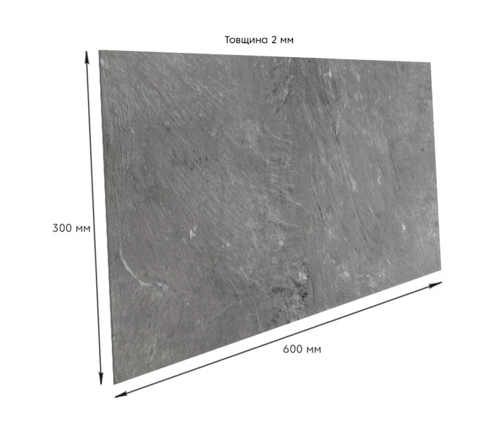 60 см х 30 см х 2 мм – 0,18 м2, кількість на 1 м2 – 6 одиниць