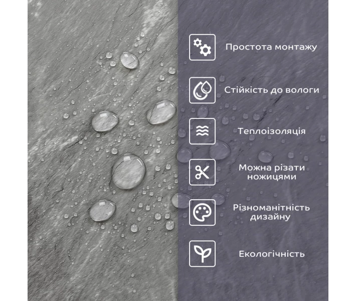 2.Стійкість до вологи: матеріал стійкий до впливу вологи та пари, а також до появи цвілі, що робить його придатним для використання в приміщеннях з високою вологістю, таких як ванні кімнати та кухні. Плитка підійде для створення фартуха кухні, можна клеїти біля плити на відстані не менше 20-25 см;