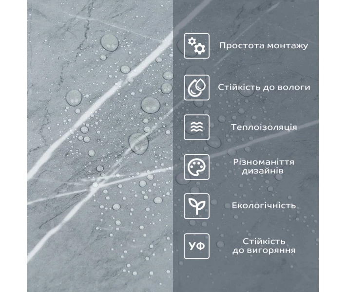 Стійкість до вологи: вінілова плитка в рулоні вологостійка, що робить її відмінним вибором для ванних кімнат, кухні та інших приміщень з підвищеною вологістю, матеріал стійкий також до впливу пари та появи цвілі. Плитка підходить для створення фартуха кухні, можна клеїти біля плити на відстані не менше ніж 30-50 см;