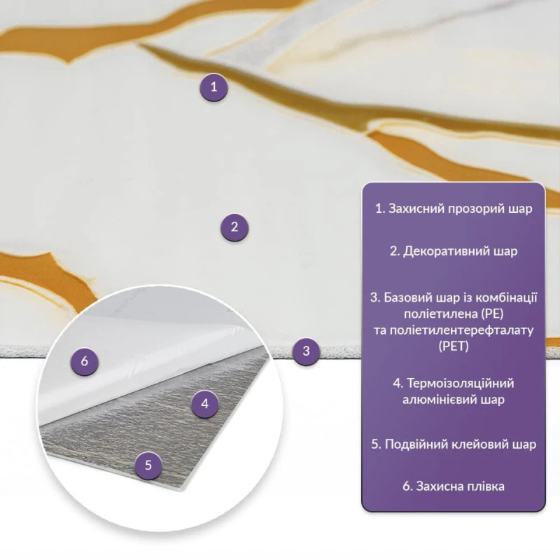 Зняти захисну плівку із зворотного боку самоклеючої плитки, щоб відкрити клейку поверхню.