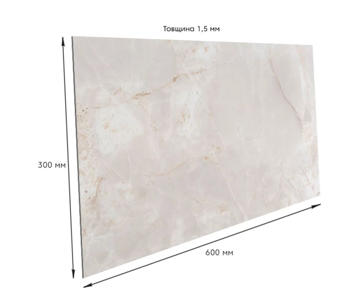 Площа покриття: 60 см х 30 см х 1,5 мм – 0,18 м2, кількість на 1 м2 – 6 одиниць