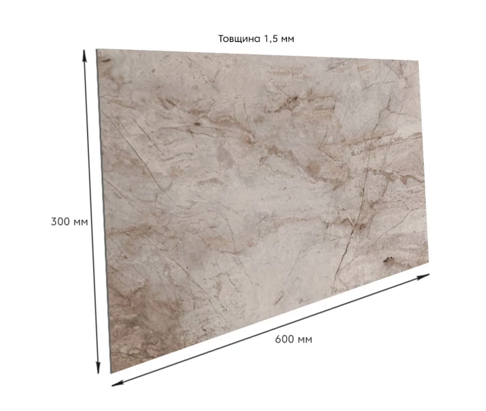 Площа покриття: 60 см х 30 см х 1,5 мм – 0,18 м2, кількість на 1 м2 – 6 одиниць