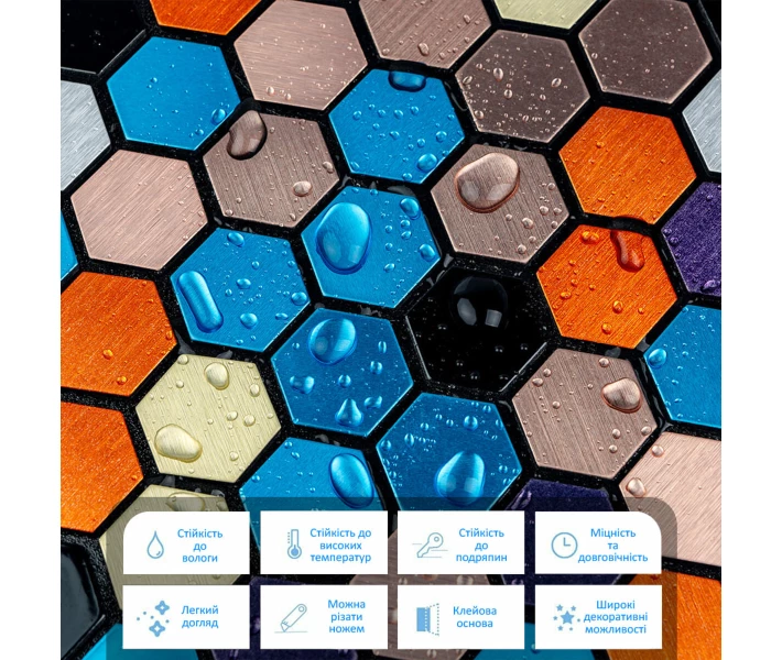- Легка установка: самоклеюча плитка спрощує процес без додаткового клею.