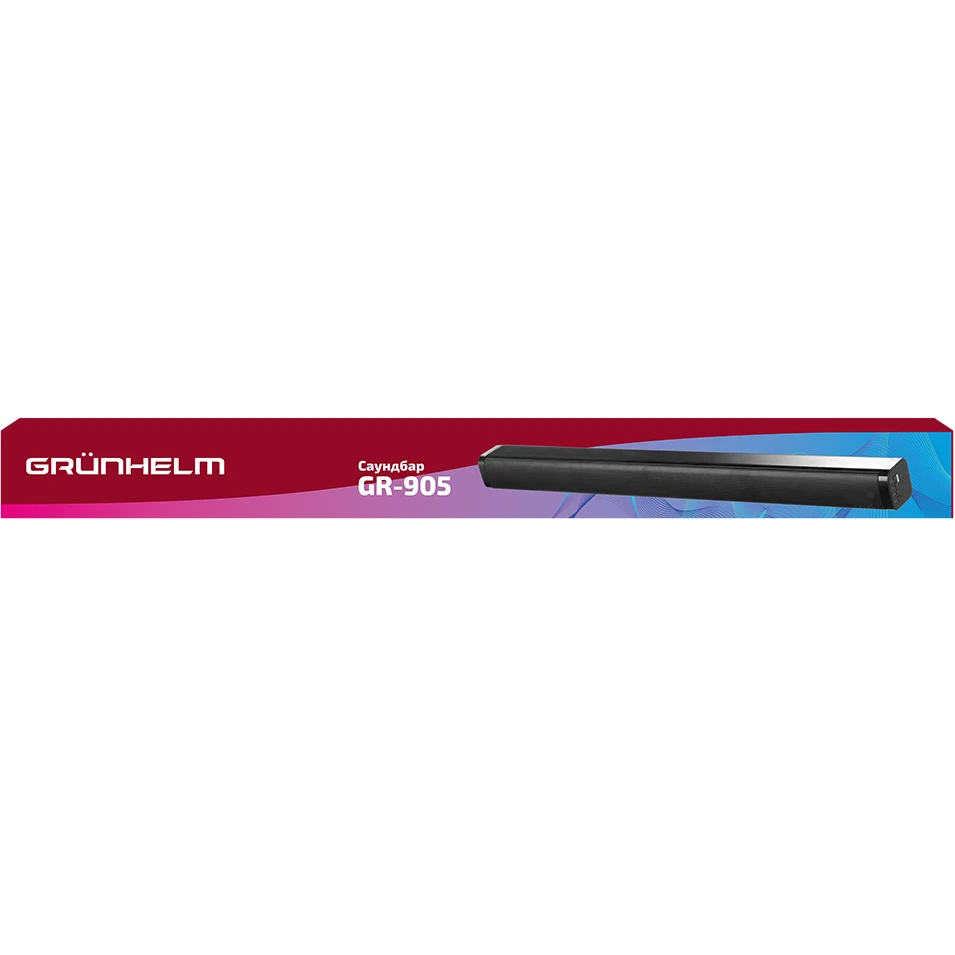 Саундбар Grunhelm GR-905 — це сучасне аудіо-рішення, розроблене для тих, хто прагне покращити якість звуку свого телевізора або іншого мультимедійного пристрою. Цей модельний ряд від Grunhelm поєднує стильний дизайн, потужне звучання та зручність використання, забезпечуючи насичений та об'ємний звук для повного занурення в улюблені фільми, серіали, музику та ігри.
