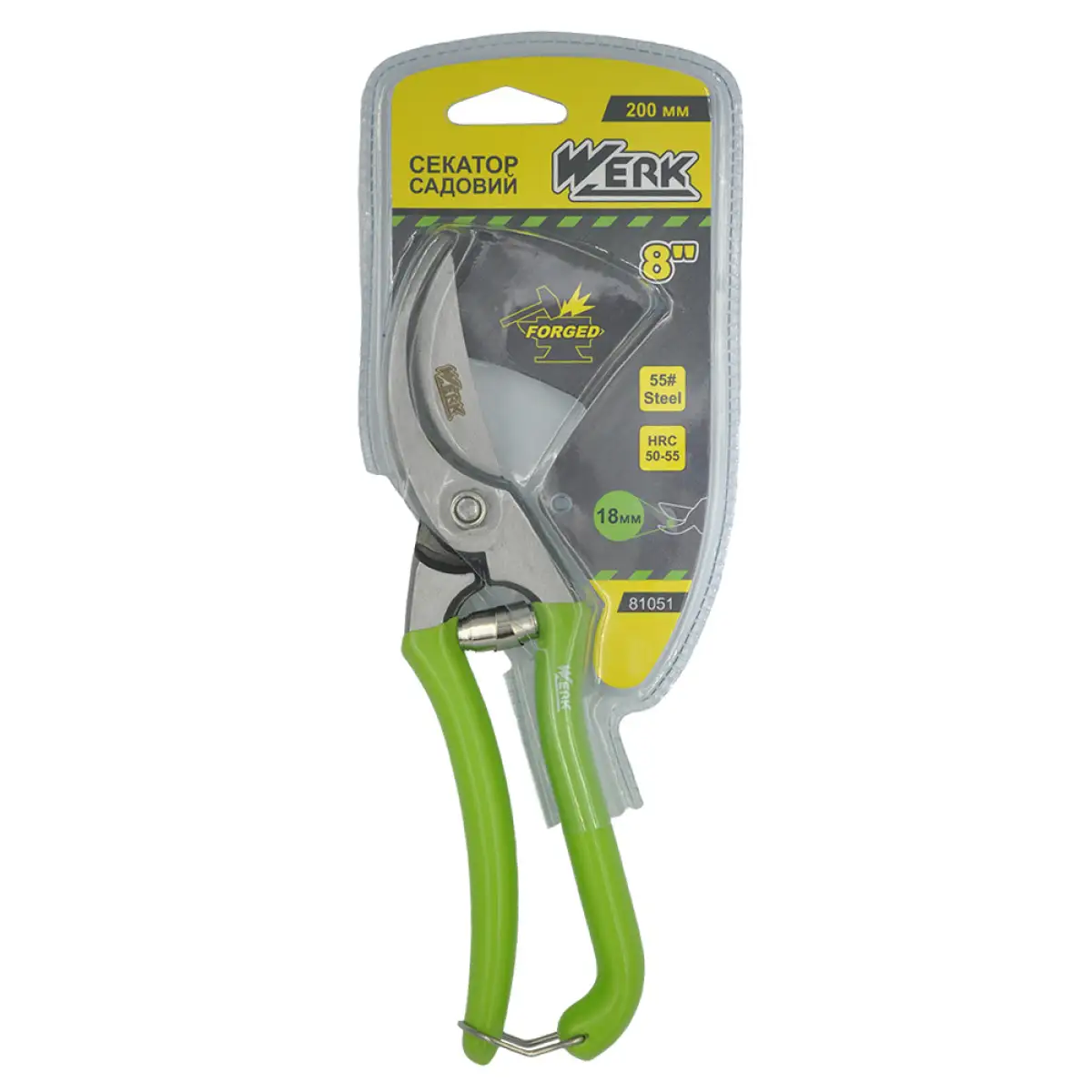 - Секатор WERK садовий кований обгумовані ручки 200мм