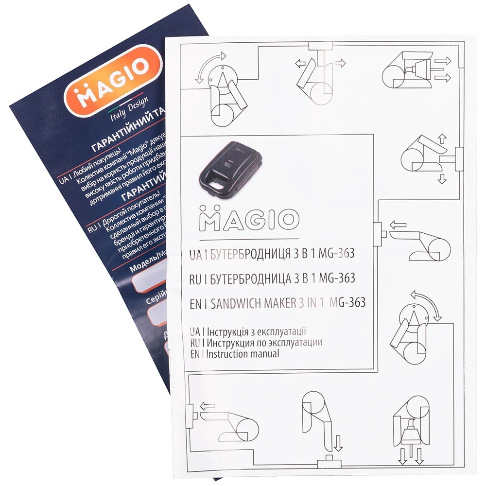 Сендвічниця MAGIO MG363 надійний помічник для приготування ідеальних бутербродів у будьякий час дня. Її компактний розмір і стильний дизайн роблять її відмінним доповненням до вашої кухні. За допомогою цього пристрою ви зможете швидко і легко приготувати смачні сендвічі, які задовольнять будьякі смакові переваги. Завдяки простому управлінню, ви зможете насолоджуватися свіжими бутербродами в будьякий час вранці, вдень або ввечері. Сендвічниця MAGIO MG363 це відмінне рішення для тих, хто цінує свій час і любить готувати швидко і легко.