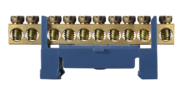 Шина BC-510 нульова з ізоляцією на DIN-рейку 6×9 мм, 10 отворів. Призначена для підключення нульових провідників у розподільчих щитах. Оснащена ізольованим корпусом, забезпечує надійну фіксацію та безпечну експлуатацію.