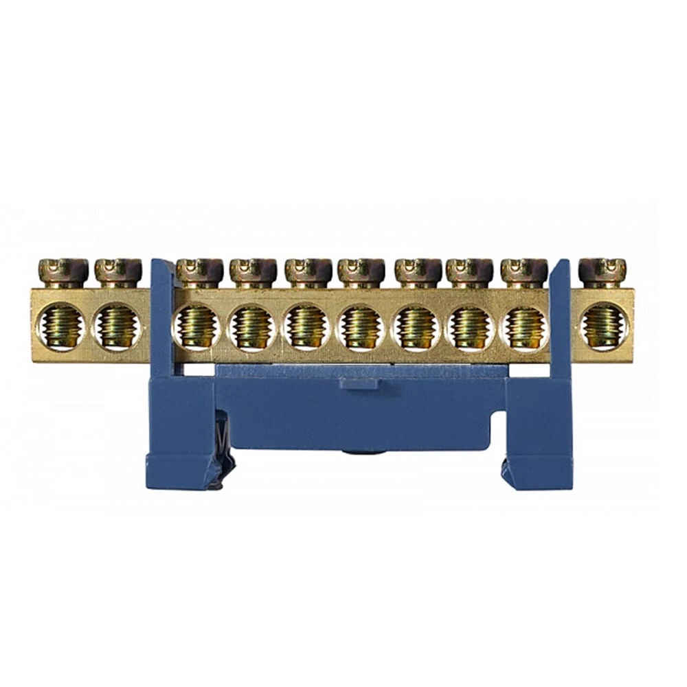 Шина нульова з ізоляцією на DIN-рейку, 10 отворів (6×9), GlSelt — призначена для підключення нульових провідників у розподільчих щитах. Оснащена ізольованим корпусом для безпечної роботи, має зручне кріплення на DIN-рейку та 10 контактних отворів для надійного та впорядкованого з’єднання проводів.