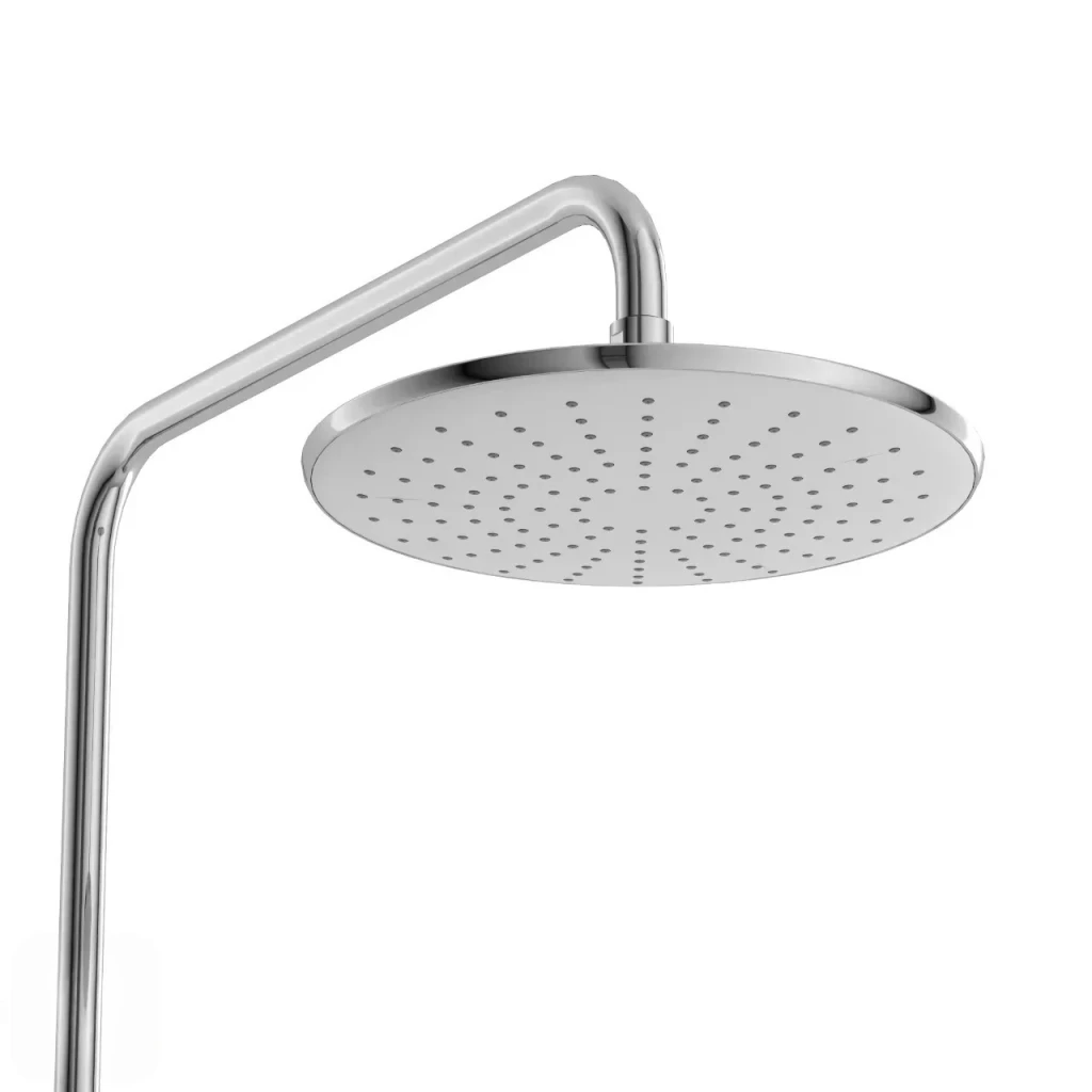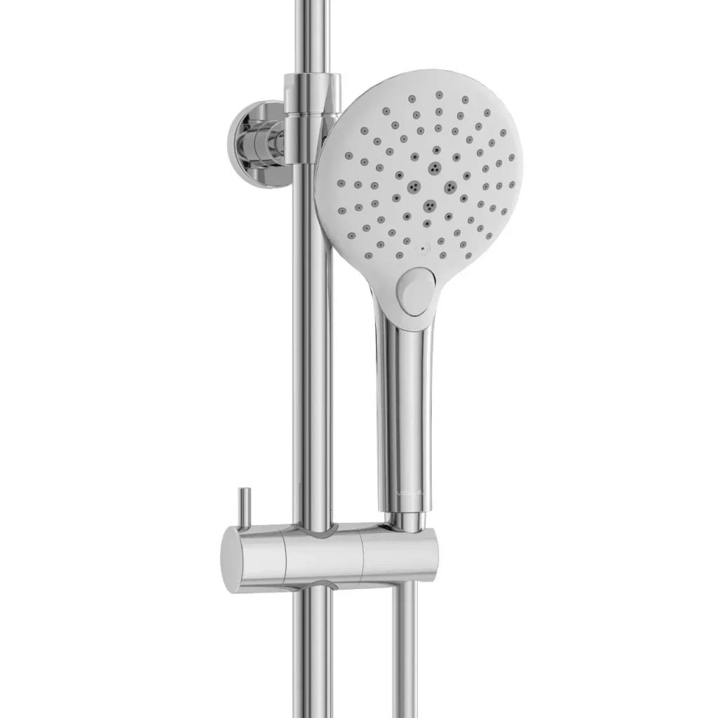 Система душова Volle SISTEMA D (R) — сучасна комплексна душова система, що включає термостат для душа, верхній дощовик діаметром 250 мм, ручну лійку з 3 режимами та гнучкий шланг 1500 мм (PVC). Термостат забезпечує точне підтримання заданої температури води для безпеки та комфорту, верхній дощовик створює приємний дощоподібний струмінь, а лійка з трьома режимами дозволяє обирати потрібний тип струменя для миття. Стійкі матеріали та сучасний дизайн роблять систему привабливою для ванної будь‑якого стилю.