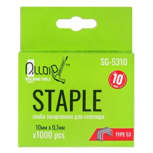 Скоба загартована ALLOID для будівельного степлера 10мм х 0,7мм, тип 53